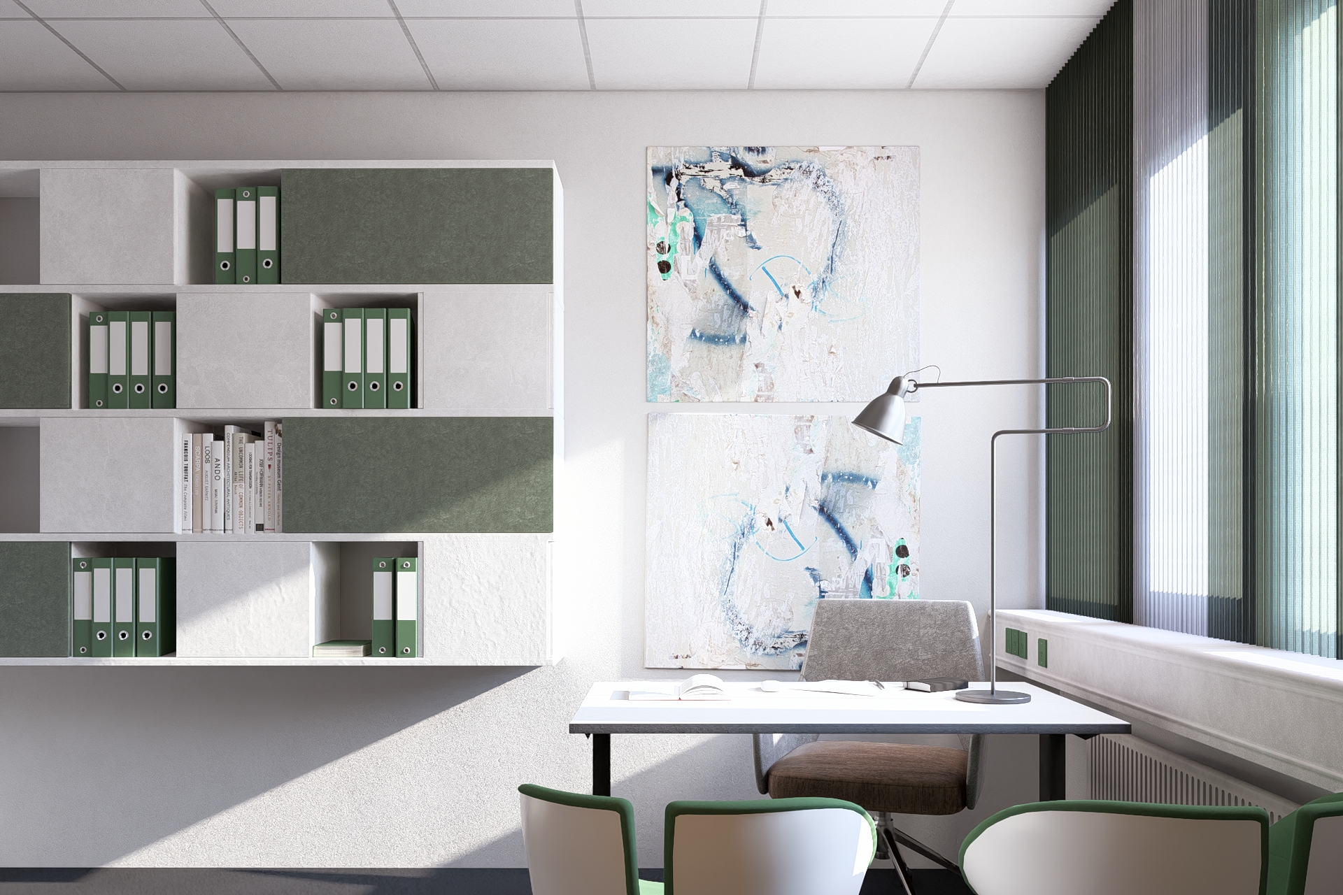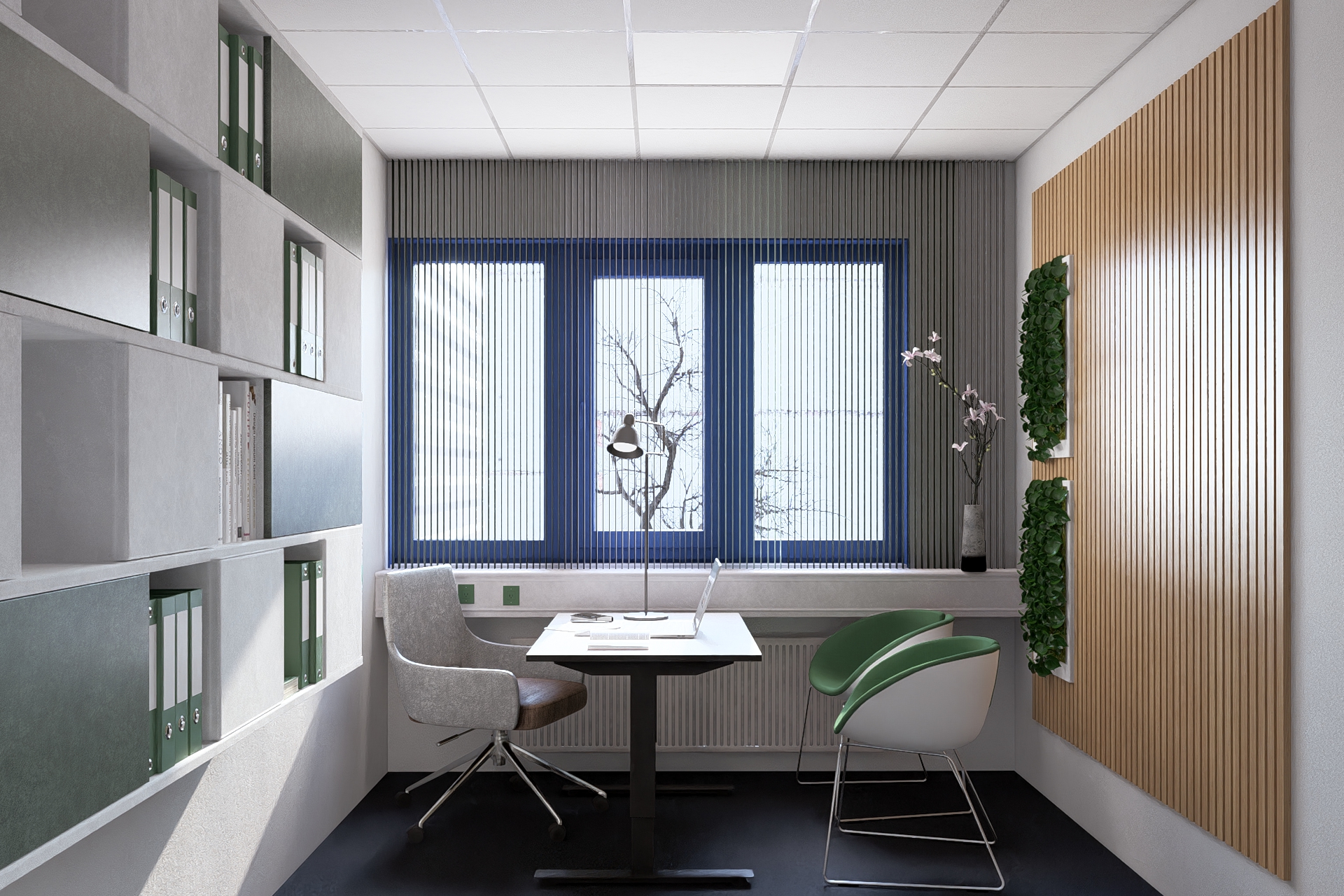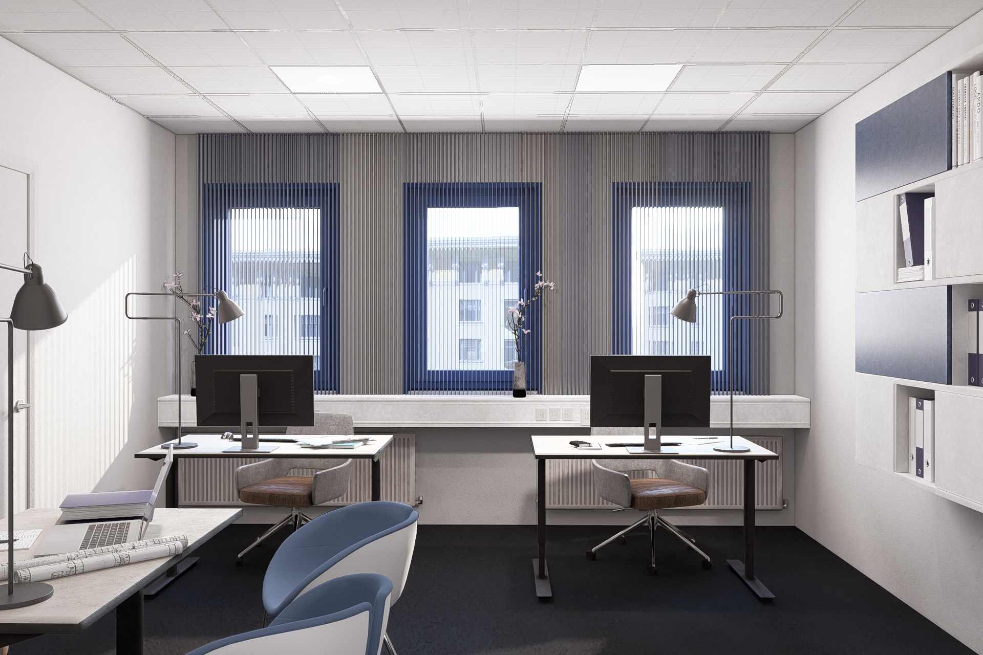 Nedenfor præsenterer OfficeAalborg en detaljeret plantegning, som fungerer som en lejemålsvælger. Her finder du specifik information om hver kontorlejlighed, herunder status, nummer, areal og pris. Derudover er der inkluderet visualiseringsbilleder af hvert kontor, der er skabt ud fra de præcise mål for at give et realistisk indtryk af lokalerne samt inspiration til indretning.
